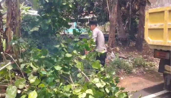 SUMENEP, Bongkar86.com – Polres Sumenep melalui Polsek Lenteng bergerak cepat melakukan langkah tanggap bencana setelah menerima laporan adanya dua titik pohon tumbang yang menghalangi akses jalan di wilayah Kecamatan Lenteng, Senin (03/11/2022).