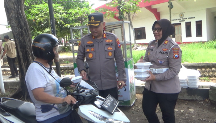 Kapolres AKBP Rivanda tak hanya memberikan nasi kotak tetapi juga menghimbau kepada pengendara tertib berlalulintas salah satunya menggunakan helm SNI. Juga pengguna sepeda listrik tetap dihimbau menggunakan helm untuk menjaga keselamatan diri sendiri.