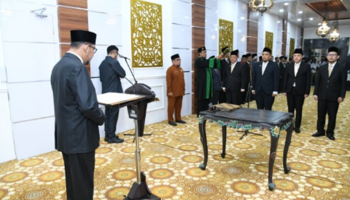 Prosesi pelantikan berlangsung di Graha Adirasa Lantai II Kantor Pemkab Sumenep, dihadiri Sekretaris Daerah, para asisten, serta pimpinan Organisasi Perangkat Daerah (OPD), Rabu (08/04/2026).