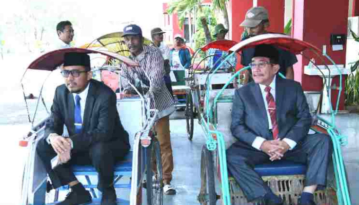 Langkah konkret ditunjukkan langsung oleh Bupati Sumenep Achmad Fauzi Wongsojudo bersama Wakil Bupati Imam Hasyim yang menggunakan becak sebagai sarana transportasi dari Kantor Bupati menuju rumah dinas.