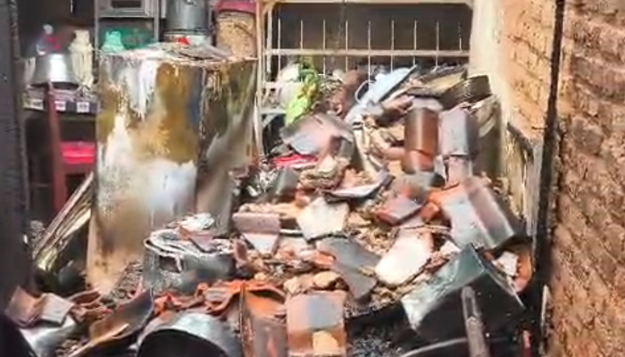 Menurut Sugianto, penyebab kobaran api akibat lampu teras rumah meledak hingga mengeluarkan api, ” terangnya