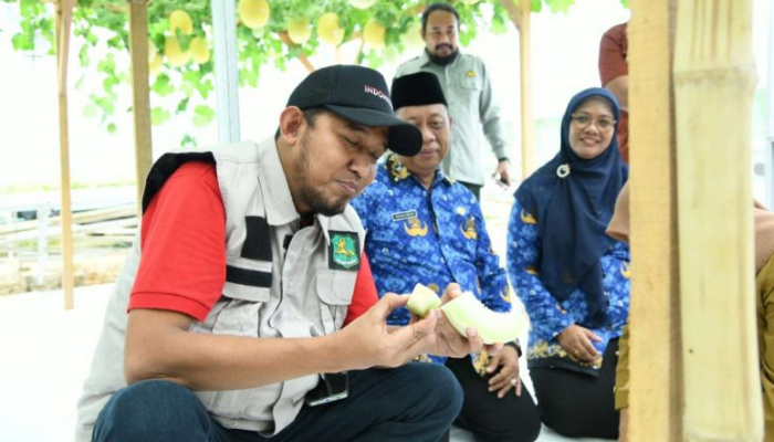 Di dalam green house, Bupati meninjau detail teknis mulai dari sistem tanam, manajemen nutrisi, hingga perawatan tanaman. Ia juga ikut memanen dan mencicipi langsung hasil panen melon tersebut.