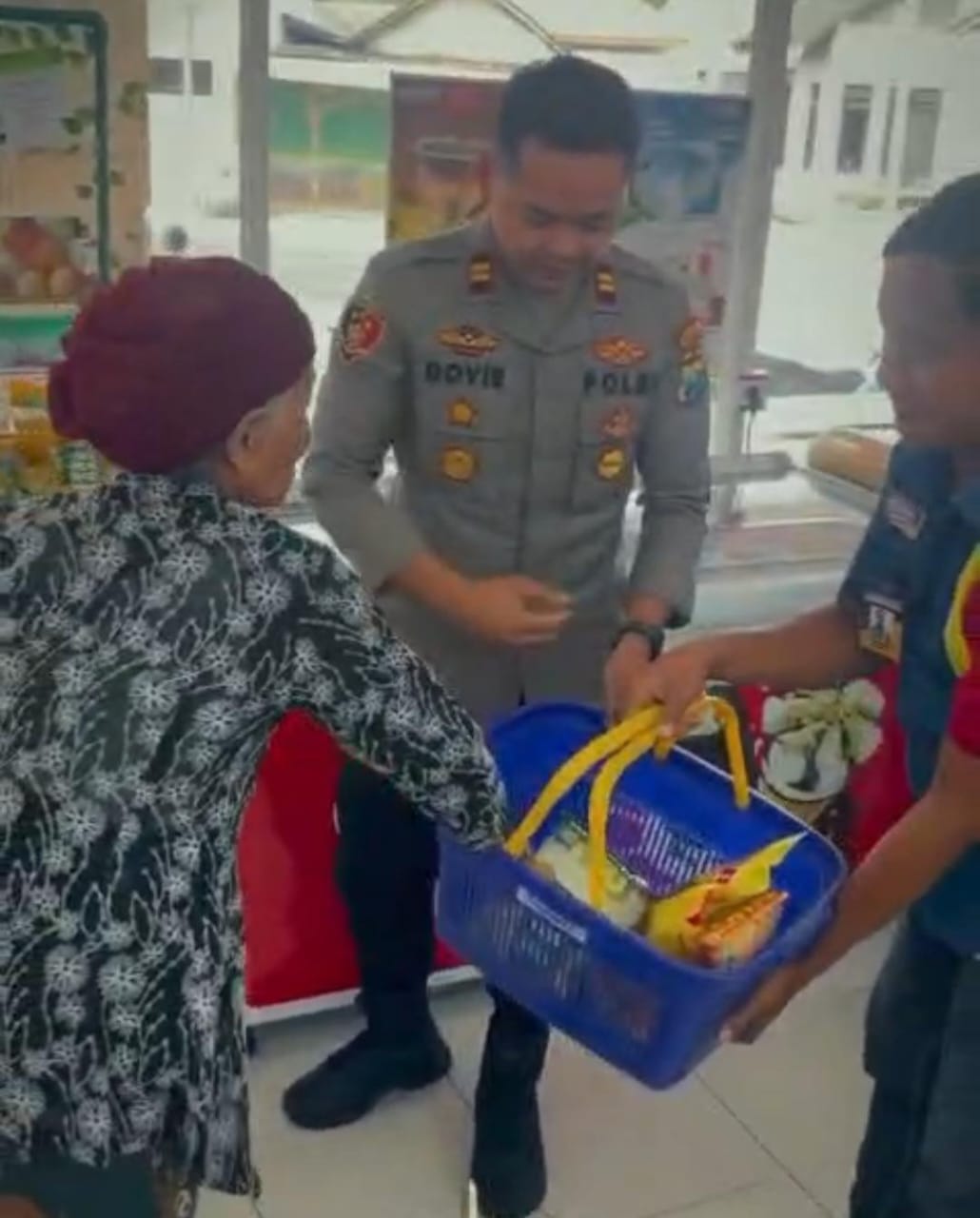 Bahkan, setelah melihat kondisi dan kesehatan Ibu Muati, kemudian Kapolsek Iptu Dovie langsung mengajaknya ke supermarket dan mempersilakan Ibu Muati memilih kebutuhan apa pun yang diinginkan untuk kebutuhan sehari-harinya.