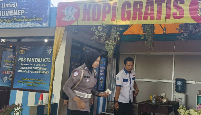 Wujudkan Keselamatan di Jalan Raya, Satlantas Polres Sumenep Dirikan Pos Pantau Kawasan Tertib Lalin dan Sediakan Kopi Gratis